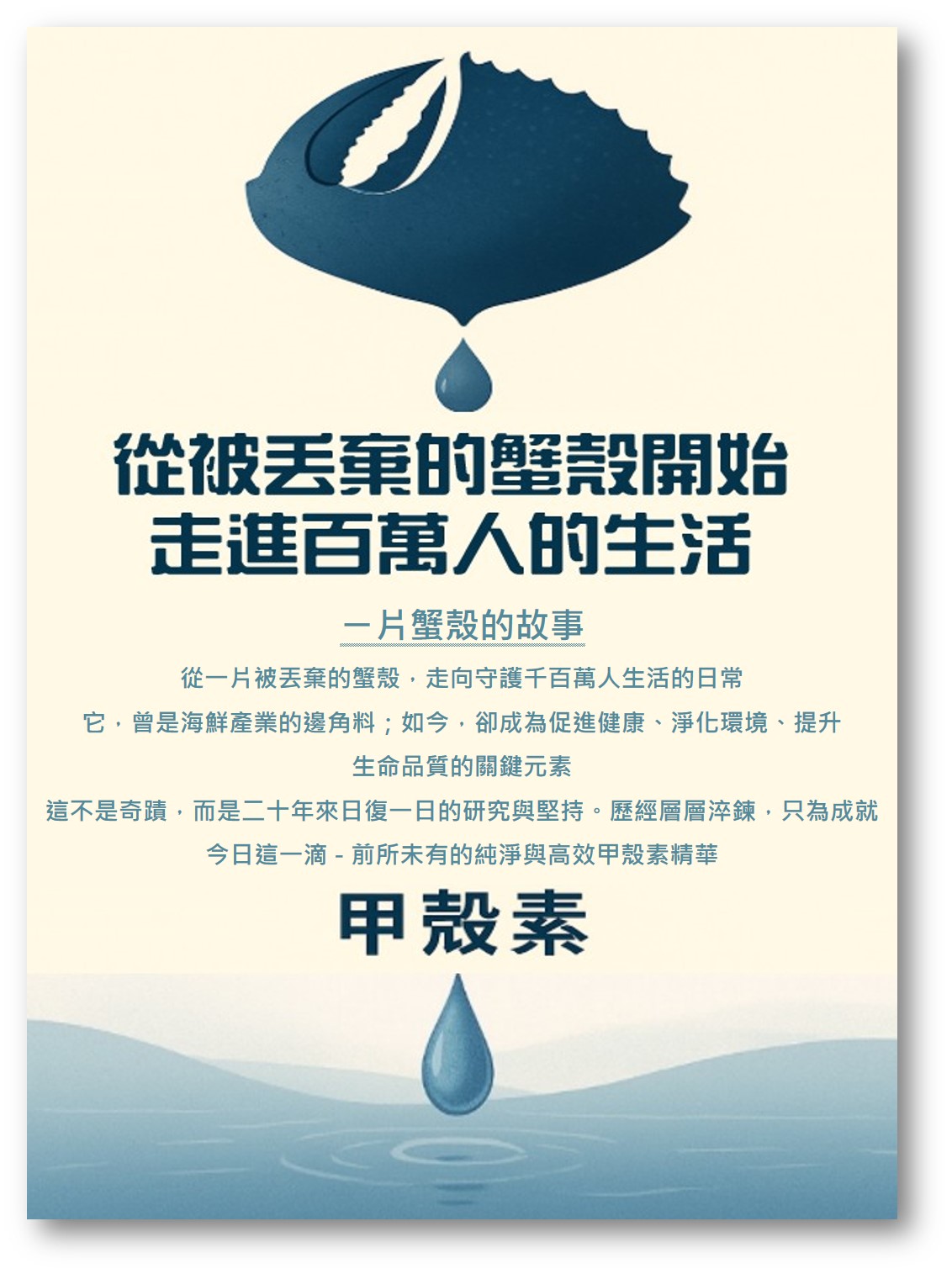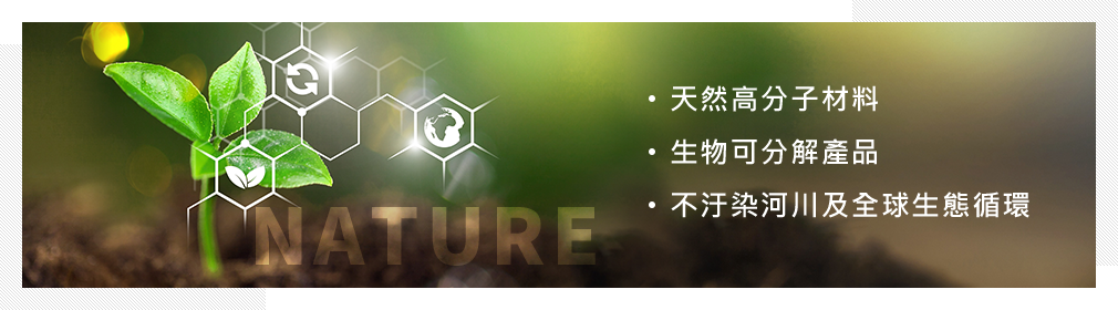 本公司主要生產天然抗菌產品 (高效抗菌甲殼素),原料取自於深海的蝦蟹生物。產品主要應用於紡織布料、衛材領域(衛生紙、衛生棉、面膜等)以及生物醫學等方面,希望為天然環保與自然環境盡一份力。出類拔萃之綠色產品,讓生態鏈得以永續循環,實現綠色經濟。