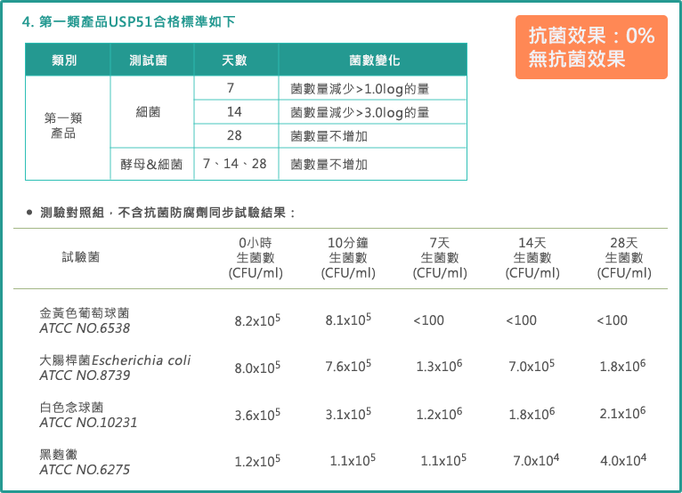 方法:USP <51>:美國防腐/抗菌劑效力测试(Antimicrobial Effectiveness Test)