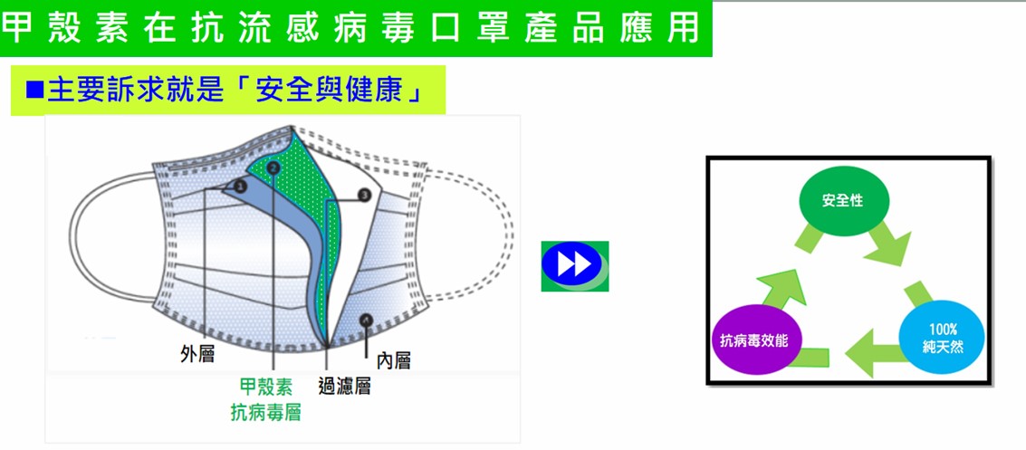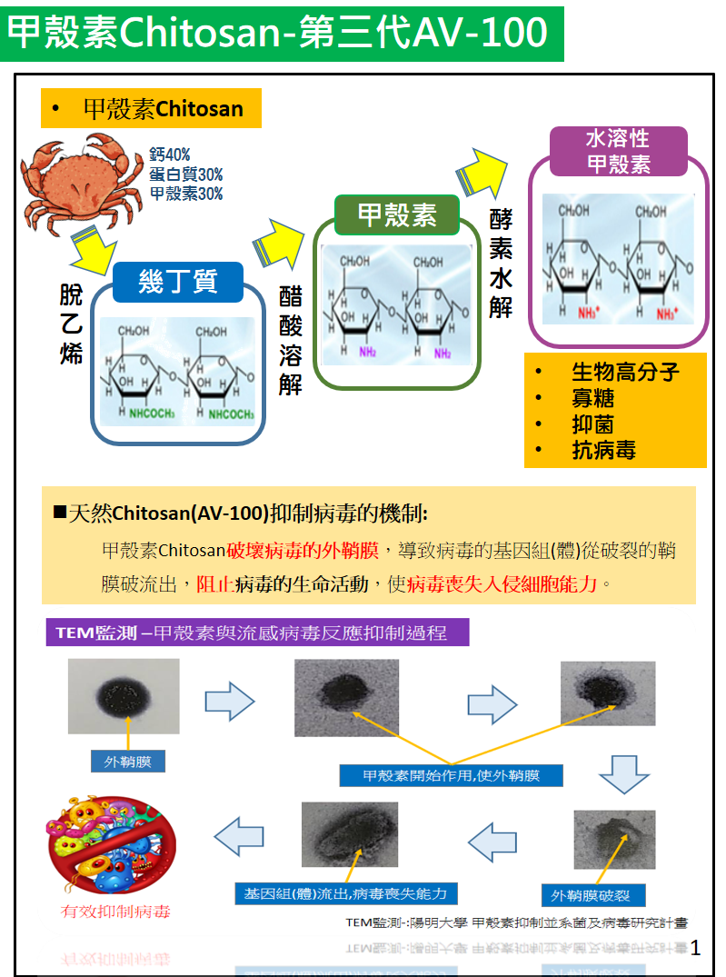 1. 小分子水溶性甲殼素,擁有超強抑制病毒能力(抗病毒活性值 Mv≧30),能有效抑制流感病毒(H3N2)