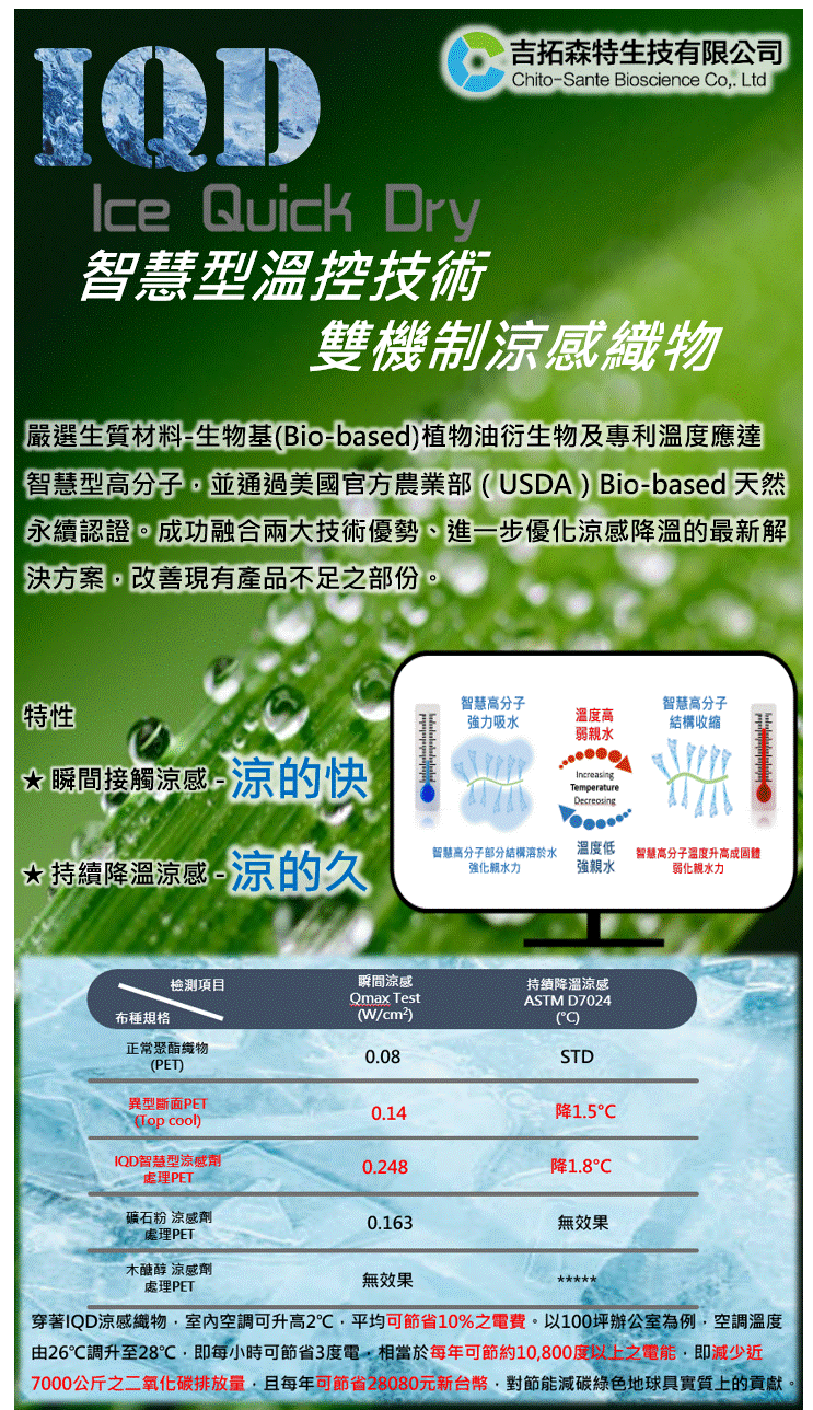 IQD 智慧型溫控技術 雙機制涼感織物