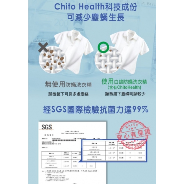 【防螨抗菌】天然科技成分ChitoHeath,經SGS專業檢驗,抗菌力達99%,減少塵螨過敏源。